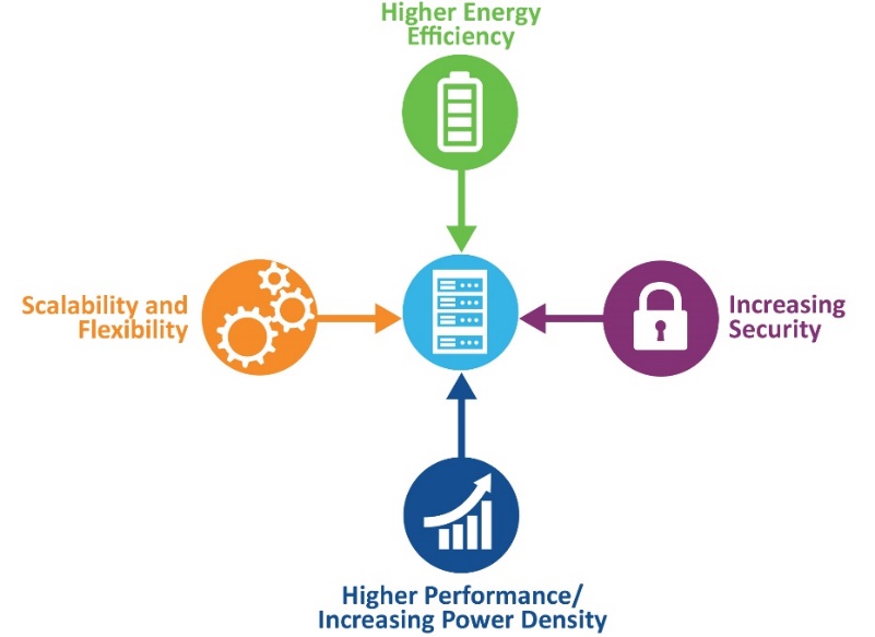 As power densities increase, delivering more power within the same or smaller physical footprint becomes a top priority. Traditional power supply units (PSUs) and air-cooling methods are reaching their operational limits, as higher power densities generate more heat and increase the risk of energy losses through inefficiency. Inefficient power conversion not only raises operational costs but also contributes to a larger carbon footprint, which is increasingly scrutinized by regulators and customers alike. Effective thermal management is essential to prevent overheating, maintain system reliability, and extend the lifespan of critical components. Data centers must find ways to maximize efficiency and manage heat dissipation, all while minimizing environmental impact and meeting sustainability goals.