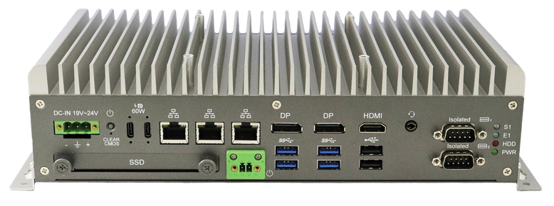 The ACS313 is a fanless compact edge computer powered by 13th Gen Intel Core processors, delivering high-performance computing with dual-channel DDR5 memory support. Designed for versatile edge deployments, it features triple 2.5GbE LAN, six USB 3.2 ports, isolated COM interfaces, and dual USB Type-C with DisplayPort Alternate Mode supporting up to 60W power delivery per port. With HDMI, dual DP++, and USB-C video outputs, it supports up to four independent displays. Four internal M.2 sockets enable storage and 4G/5G expansion, while TPM 2.0 security, voltage protection, and flexible DIN rail or wall mounting ensure reliable industrial operation.