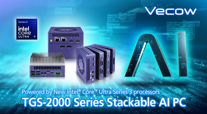 The Vecow TGS-2000 is the market's first stackable AI PC powered by Intel Core Ultra Series 3 (Panther Lake). Delivering 100 platform TOPS, it masters localized AI inference in a space-efficient NUC-sized form factor. Its innovative tool-less modular design integrates versatile I/O configurations with high-performance MXM GPU docking, allowing the system to scale from a streamlined edge controller to a high-density computing node. Engineered for space-constrained, mission-critical environments, the TGS-2000 redefines industrial flexibility, bridging the gap between compact IoT gateways and workstation-level platforms at the edge.