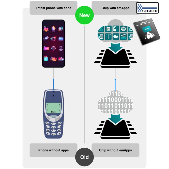 emApps is a software framework that brings application-level flexibility to embedded systems. It decouples functionality from fixed firmware by allowing small, sandboxed apps to be loaded and executed at runtime without modifying the validated core system. Apps run on a compact virtual CPU designed specifically for resource-constrained microcontrollers, providing strong isolation, high execution efficiency, and a very small footprint. emApps integrates seamlessly into existing firmware projects and enables functional extensions, updates, and customization throughout a product’s lifetime, including after deployment.
