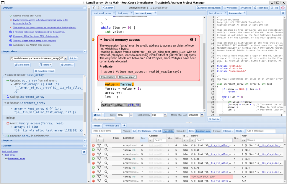 TrustInSoft Analyzer is an exhaustive Rust/C/C++ hybrid code tool that uses a series of mathematical and logical reasonings called formal methods, which allows users to perform exhaustive analysis of source code without the need to understand formal methods. It provides compliance-ready reporting with a user-friendly graphical interface that directs developers to the root cause of bugs, as well as the ability to expand the coverage of their existing tests. TrustInSoft serves a diverse range of industries, including automotive, aerospace, defense, consumer electronics, and IoT industries