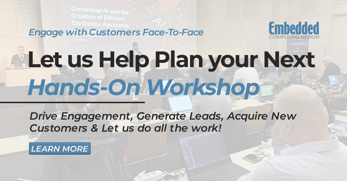 Embedded Computing Design Live Workshops deliver turnkey, content-driven events that connect your technology directly with a highly qualified, global embedded systems audience. Designed for engineers and technical decision-makers, our workshops position your brand as a trusted authority while driving measurable engagement, generating leads, and acquiring new customers.