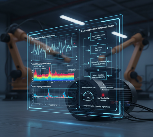 Motor vibration sensors often sample at rates ranging from around 5 kHz up to about 50 kHz. Before AI algorithms can assess machine health, raw time-domain data must be transformed into frequency-domain representations that reveal meaningful fault signatures. Fast Fourier transform (FFT) and short-time Fourier transform (STFT) processing are foundational to this workflow.