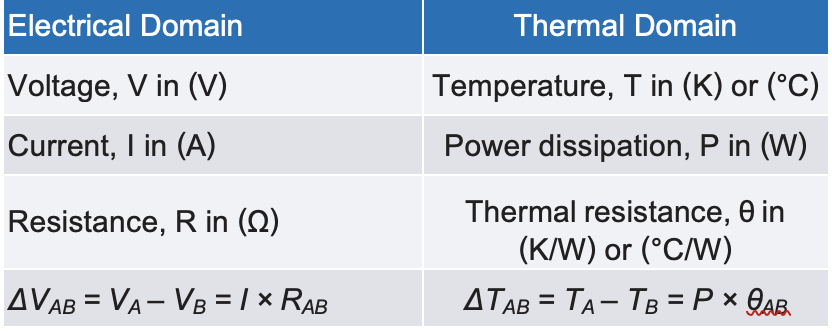 For clarity, Table 1 provides analogies between steady-state electrical and thermal parameters.