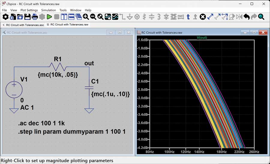 Figure 1. RC circuit using mc() to set value and tolerances of passive components.