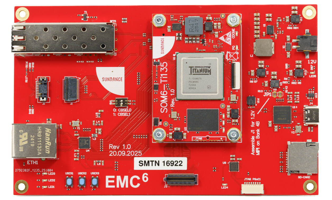 Sundance Multiprocessor Technology Ltd (Sundance) announced its SMT135-C, an Efinix Titanium Ti135 evaluation board based on the SoM6 Ti135 system-on-module (SoM) built around the Efinix Titanium Ti135 FPGA, in a N676 package.
